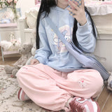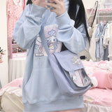 - This pastel blue cinnamoroll hoodie has cozy warm long sleeves, and a wonderful decal your favorite sanrio character baking up a storm! A warm cozy drawstring hood puts this long sleeve shirt over the top!