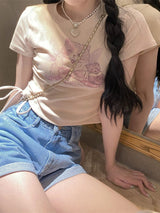 - Adorable Kitty Design: The front of the top displays a soft pastel illustration of a fluffy kitty with a cute bear, bringing out a kawaii aesthetic that's hard to resist.