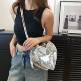 The "Edgy Holographic Heart Purse" brings together reflective fashion and kawaii sensibilities in one standout piece!