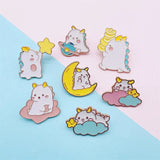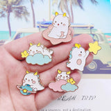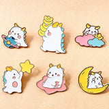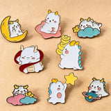 Adorable Designs: Fall in love with our Kawaii Dragon Enamel Pins! Each set includes uniquely designed dragons depicted in various playful scenarios—sitting on clouds, cuddling with stars, and even lounging on the moon.