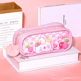 Stay organized in the cutest way with this Kawaii Plaid Bunny Pencil Case! Perfect for any kawaii aesthetic, this case features adorable bunnies, fruity designs, and plaid patterns. Its soft pastel colors add a playful touch, and the fluffy pom-pom zipper makes it extra fun.