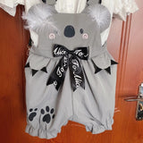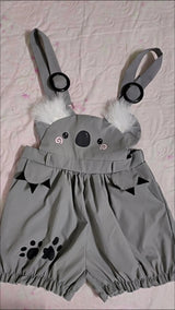 - It has a sweet little koala face embroidered on the chest, bloomer style shorts, and adjustable size straps!