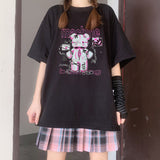 Step into the world of kawaii fashion with the Machine Bear Menhera Tee! This oversized black t-shirt is the ultimate in creepy cute style, perfect for fans of pastel goth or goth aesthetics. With its bold and edgy design, this tee showcases a unique blend of cyber-anime influences, making it a must-have for your wardrobe.