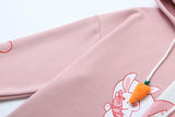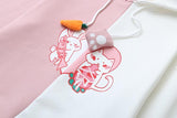 - With an adorable kitten on one side featuring a cute hanging paw drawstring, and a bunny rabbit on the opposite side, with a matching hanging carrot drawstring!
