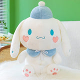 Introducing the "Happy Cinna Plush" — the perfect cuddly companion for all kawaii lovers! This adorable Cinnamoroll stuffed animal comes dressed in a cozy outfit, complete with a matching beret and heart-shaped blush marks on its cheeks, giving it an extra dose of cuteness. Available in multiple sizes, this plushie is designed to fit right into any kawaii aesthetic room setup.