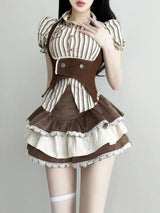 - Cute and playful striped brown & white collared button-up shirt for a touch of vintage charm.