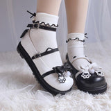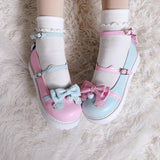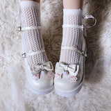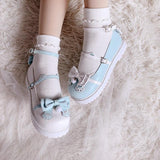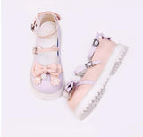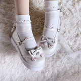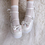 - A beautifully detailed pair of traditional pastel sweet shoes with dainty slight wedge heel, cute embroidered paw prints, and so many kawaii details!